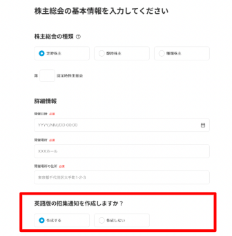 これまでの株主総会の招集通知の作成は日本語版のみの対応でしたが、本アップデートにより、FUNDOORで英語版招集通知作成を作成し、送付いただけるようになりました。