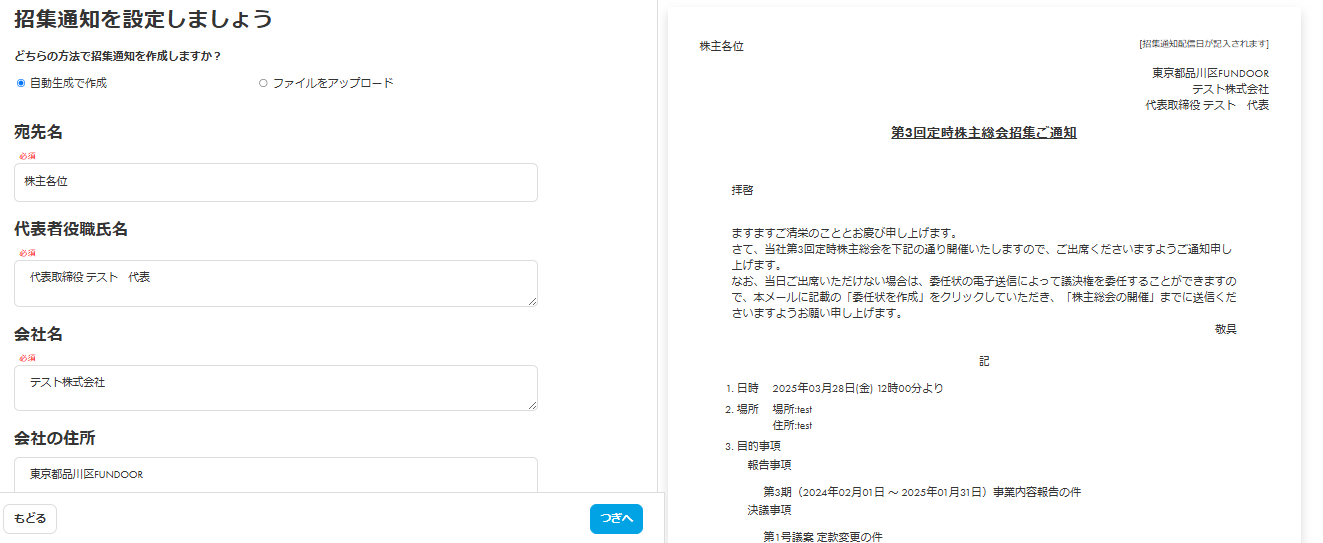 株主総会機能において、日本語・英語版の招集通知および委任状の作成・送信に対応するとともに、FUNDOORで自動作成された招集通知や委任状の配信内容を編集できるよう、機能をアップデートいたしました。これに伴い、株主総会機能の操作画面も改良を行いましたので、お知らせいたします。