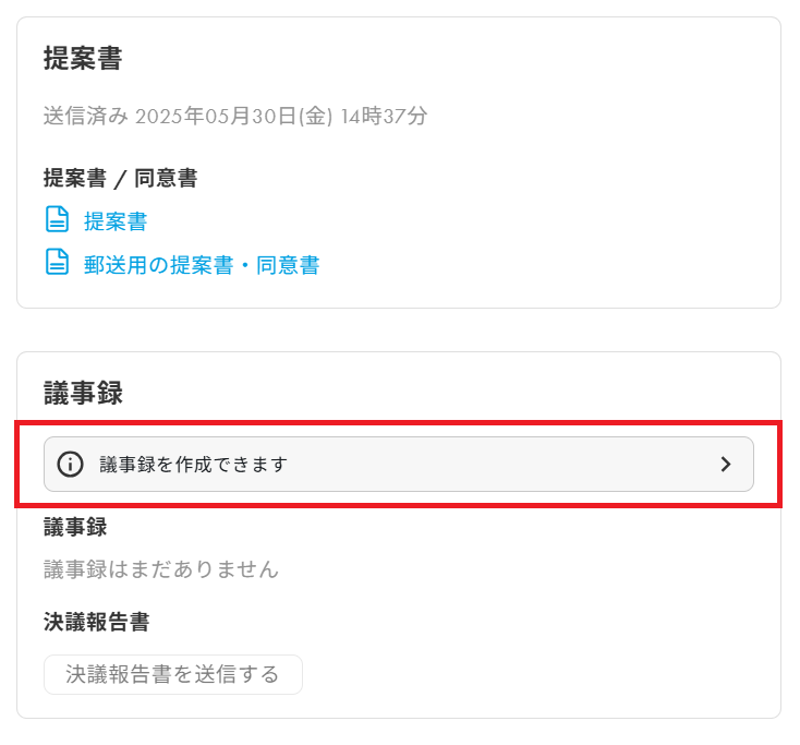 1.開催前でも、可決・否決にかかわらず、議事録をいつでも作成いただけるようになりました。