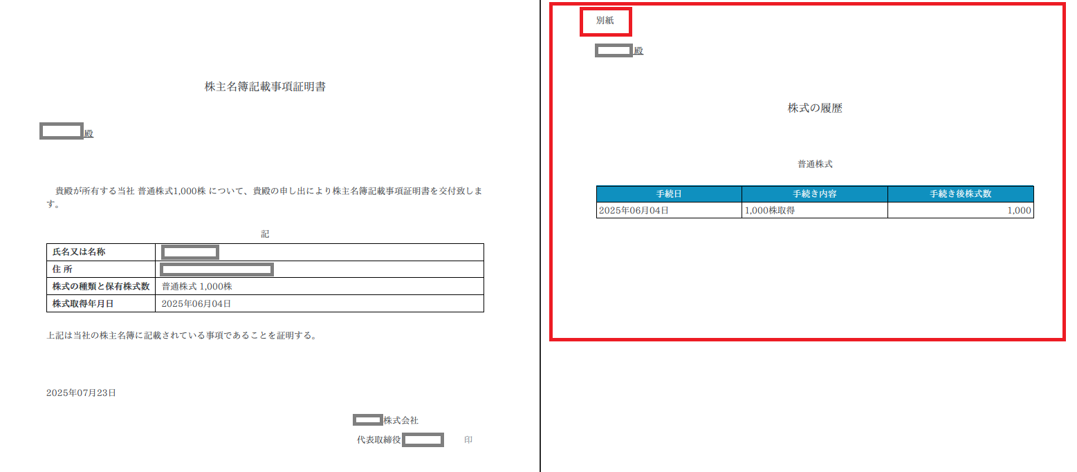 1.株主名簿記載事項証明書に、別紙として「手続履歴」が出力されるようになりました。
