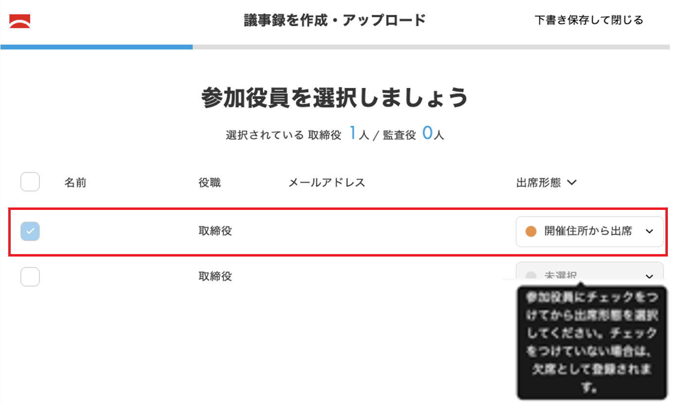 【取締役会】議事録作成時の出欠登録がよりスムーズになりました