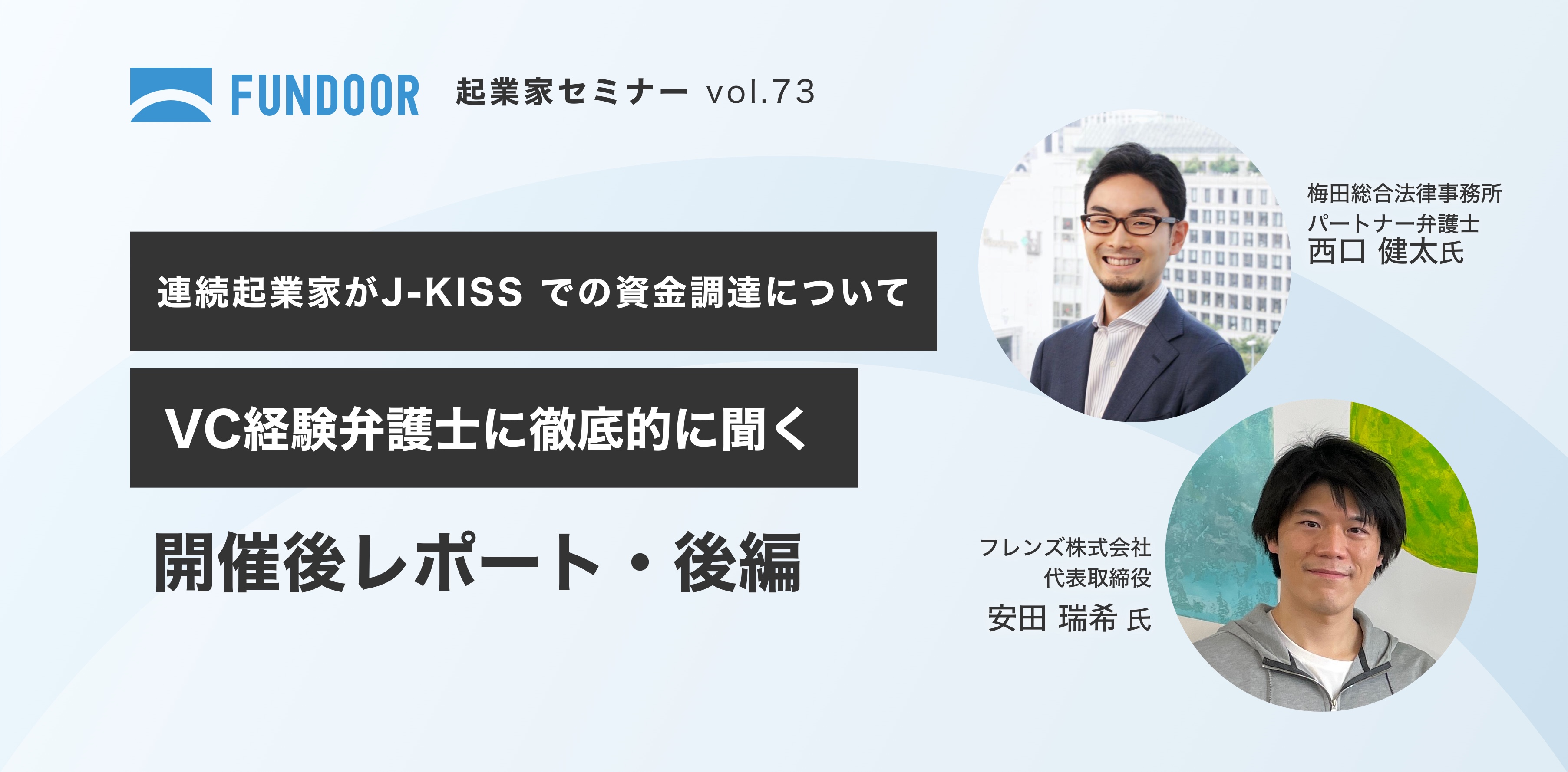 クラウド経営管理ソフト「FUNDOOR」を展開する株式会社FUNDINNOでは、定期的に起業家向けセミナーを開催しています。前編に続き、「連続起業家がJ-KISSでの資金調達についてVC経験弁護に徹底的に聞く」オンラインセミナーの後編をお届けします。