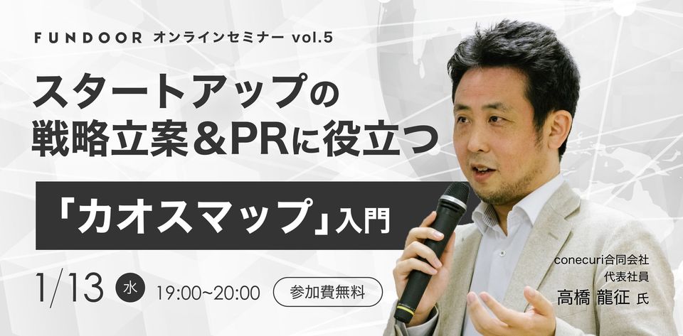 2021年1月13日、株式会社日本クラウドキャピタル主催のオンラインセミナー「スタートアップの戦略立案&PRに役立つ「カオスマップ」入門」が開催されました。