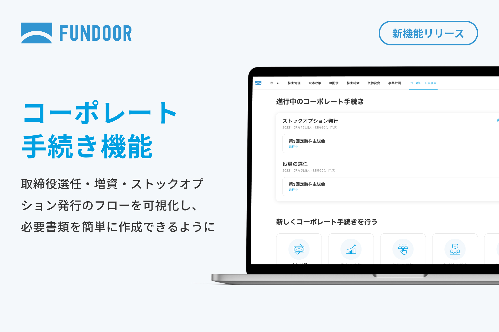 株主管理・経営管理プラットフォーム「FUNDOOR」 新たに『コーポレート手続き機能』を実装