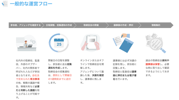 取締役会の一般的な運営フローは、大きく次のように分けることができます。