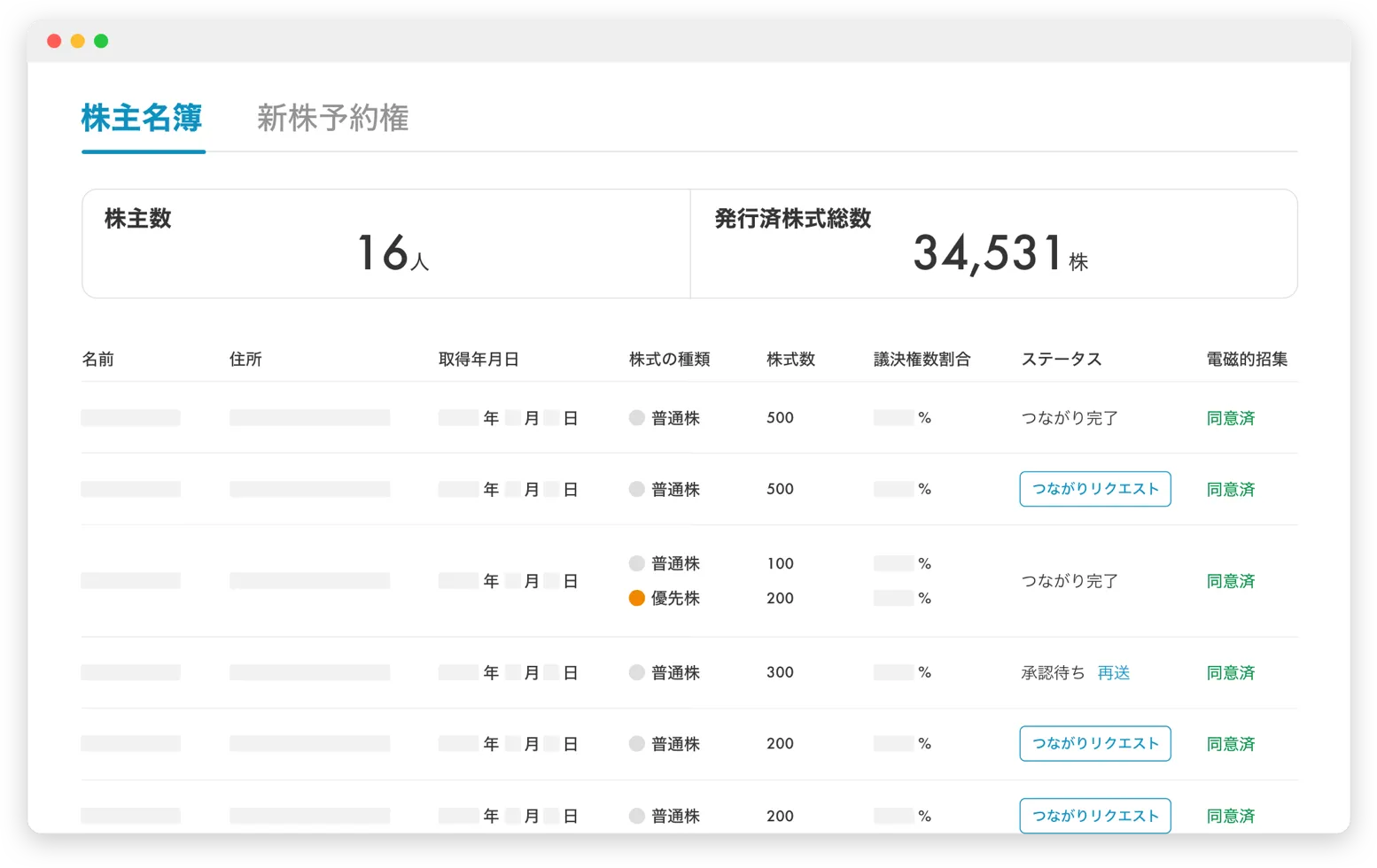 株主名簿・新株予約権原簿をクラウドで一元管理