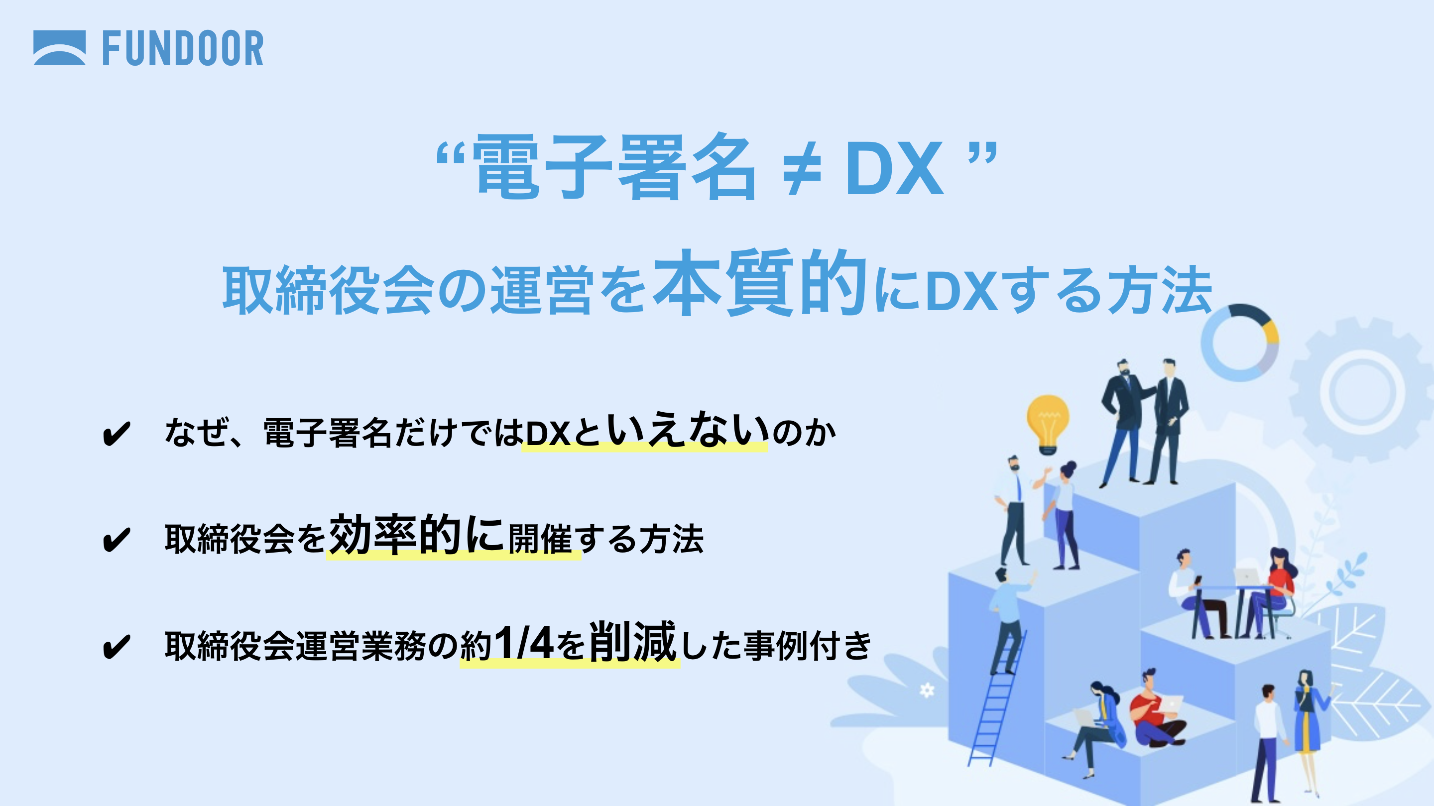 取締役会を本質的にDXする方法をまとめた、お役立ち資料です。取締役会の運営をDXする上で、電子署名以外にも効率化できるポイントについて解説しています。
