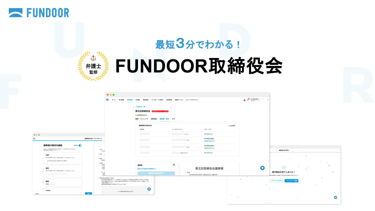 FUNDOORの取締役会機能に関する説明資料です。本機能で実現できることや、実際に利用いただいたお客様の声を紹介しております。